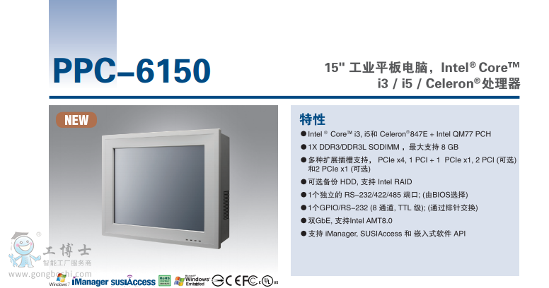 研華PPC-6150-RI5AE(I5-3610ME 2.7GHz)/4G/500G工業(yè)平板一體機(jī) |