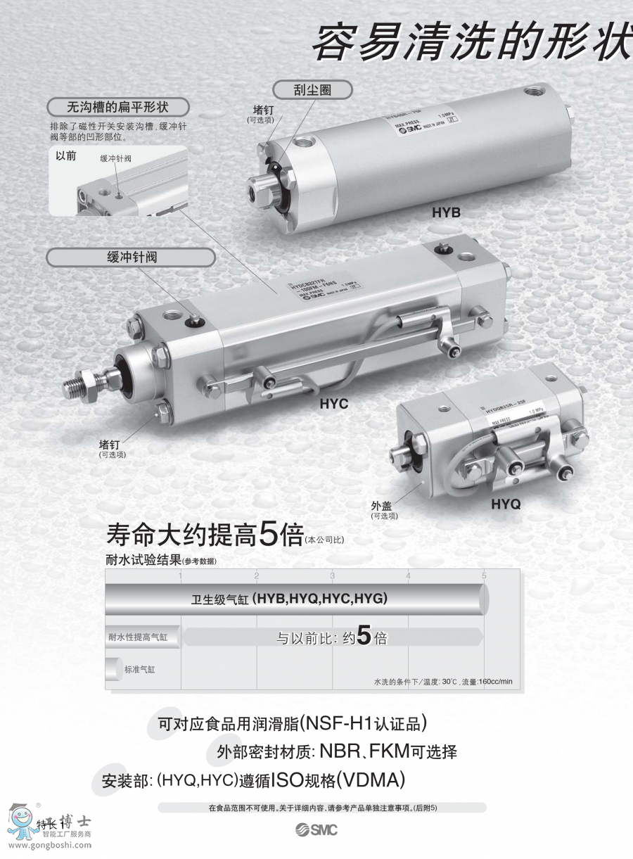 形狀便于洗凈的耐水性氣缸。