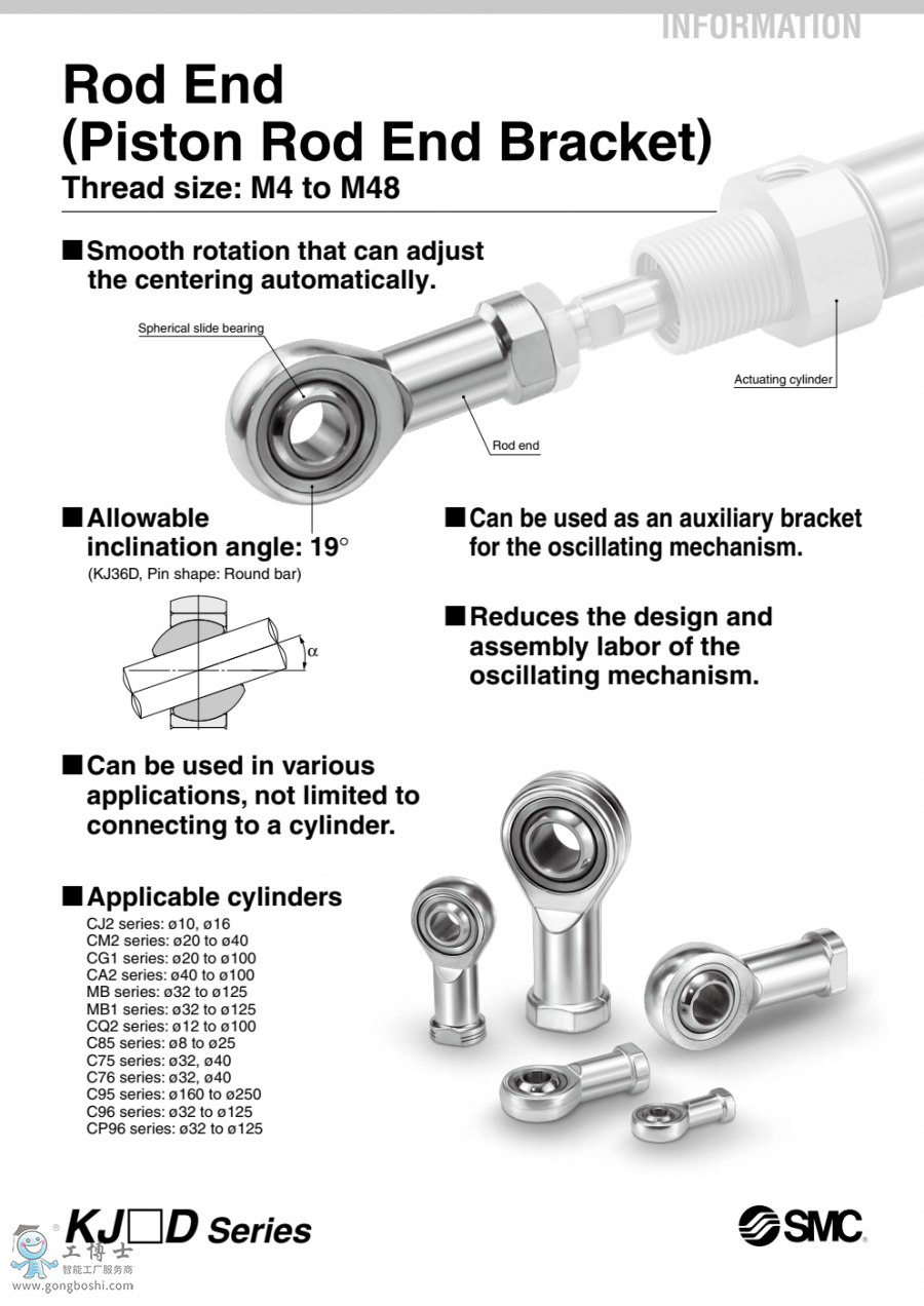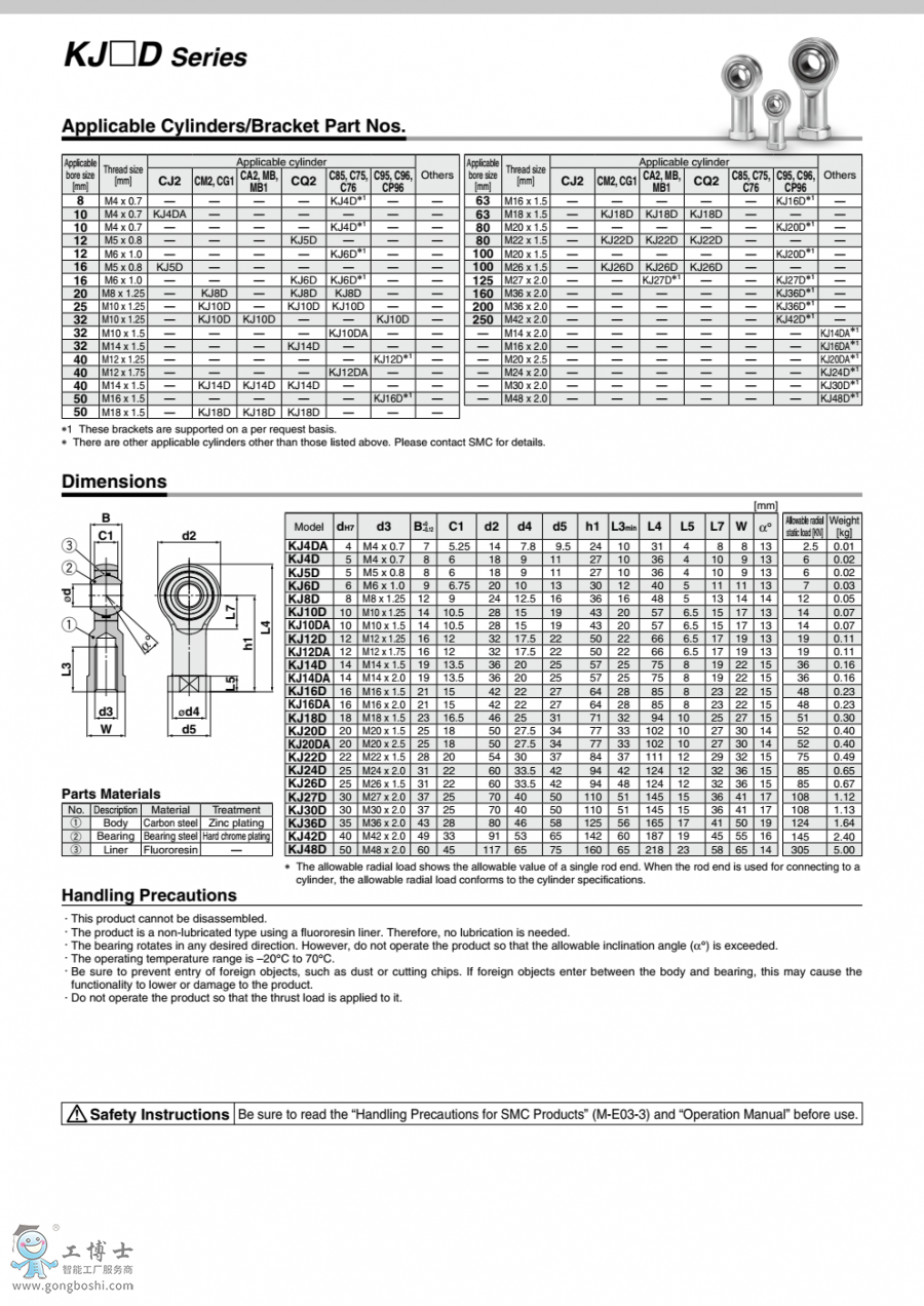 KJ□D系列 SMC浮動接頭 活塞桿前端安裝件