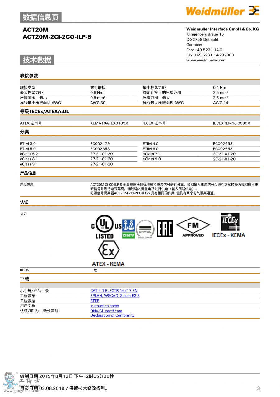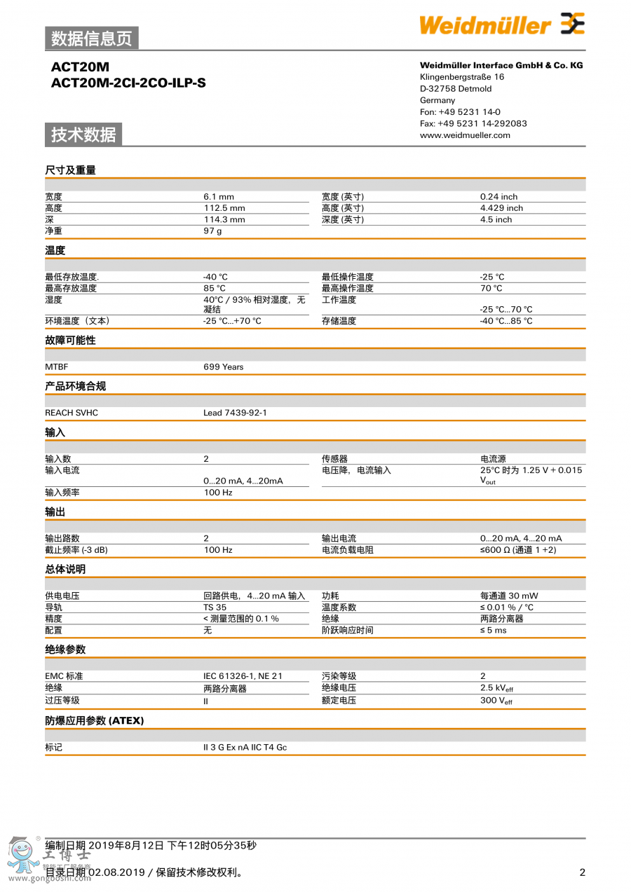 ACT20M-2CI-2CO-ILP-S魏德米勒weidmulle 變送器 貨號1176080000 |