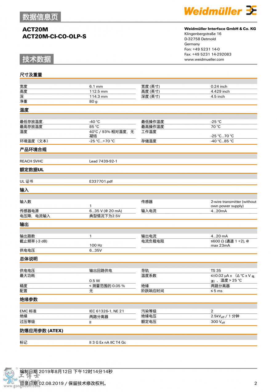 ACT20M-CI-CO-OLP-S魏德米勒weidmulle 變送器 訂貨號(hào)1176040000 |