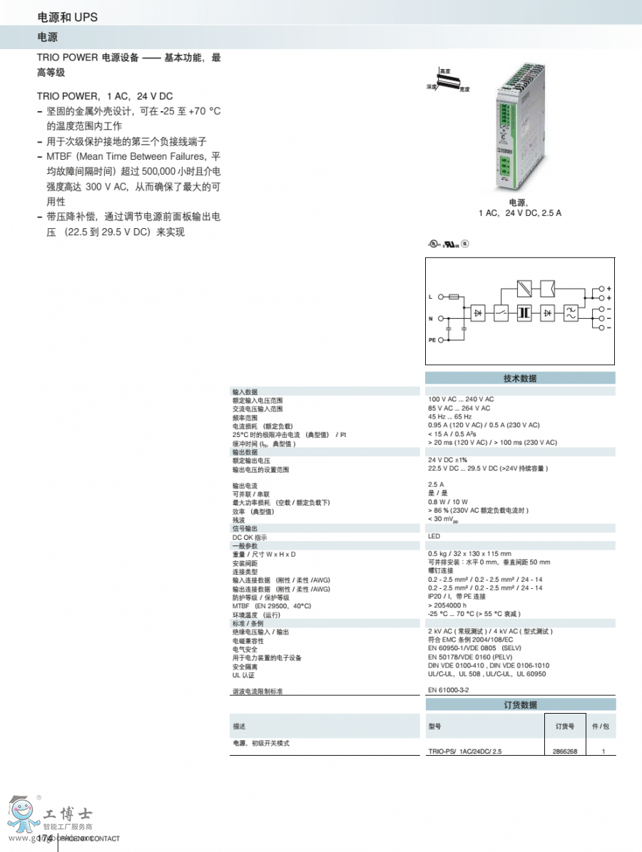 菲尼克斯電源TRIO-PS/1AC/24DC/2.5訂貨號2866268原裝現貨 可開增票
