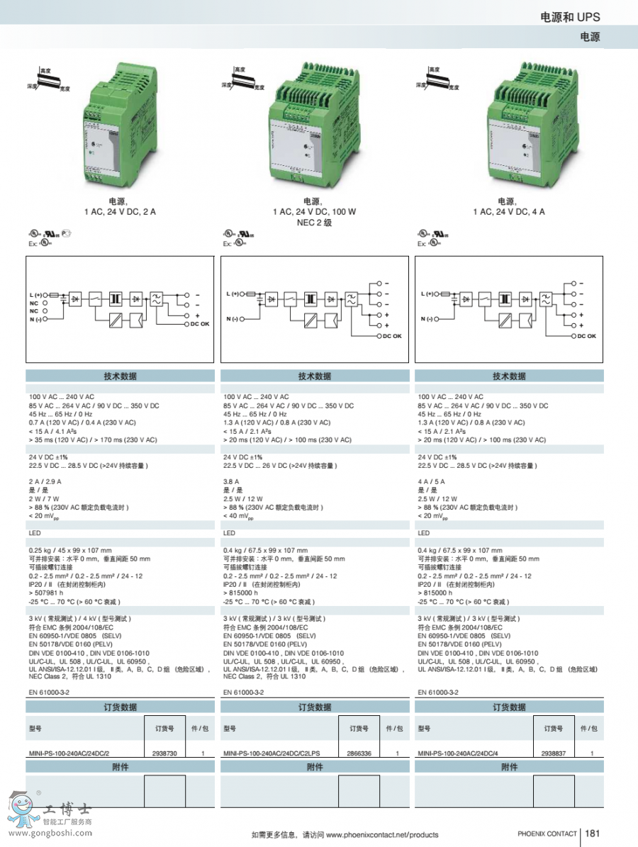 菲尼克斯電源MINI-PS-100-240AC/24DC/2訂貨號2938730原裝現貨 可開增票 |