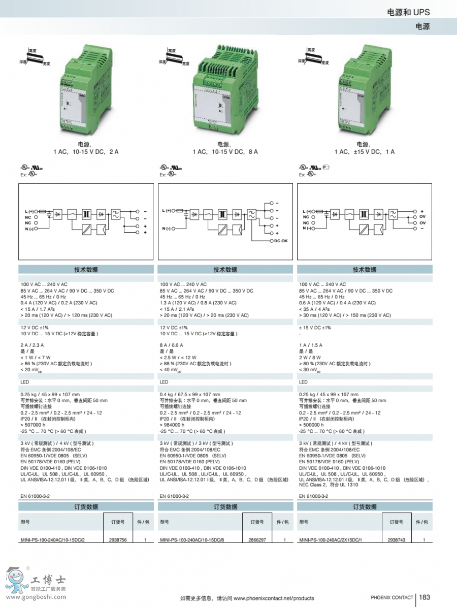 菲尼克斯電源MINI-PS-100-240AC/10-15DC/8訂貨號2866297原裝現貨
