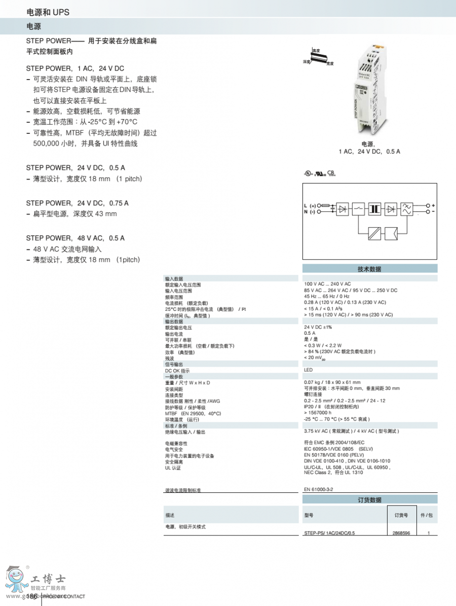 菲尼克斯電源STEP-PS/1AC/24DC/0.5訂貨號2868596原裝現貨 可開增票