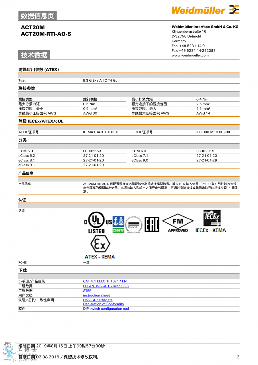 ACT20M-RTI-AO-S魏德米勒weidmuller信號分配器 訂貨號1375510000 |