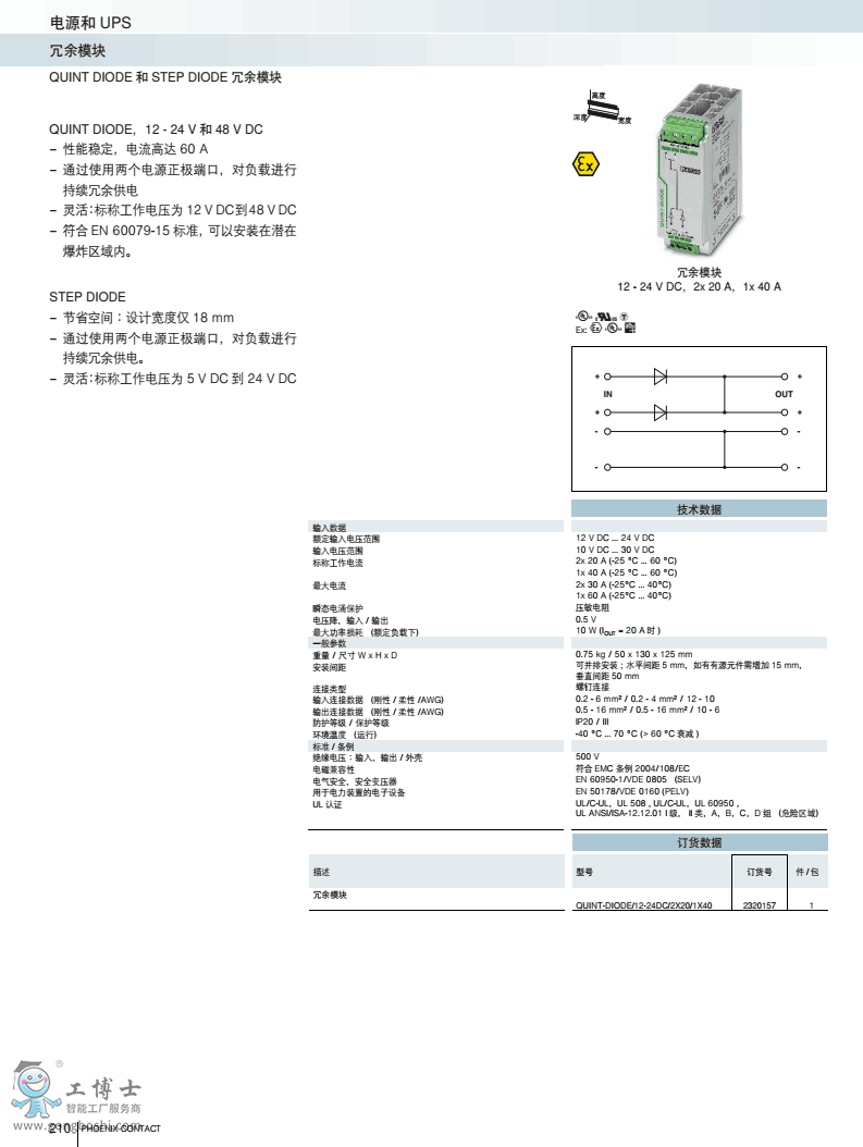 菲尼克斯電源QUINT-DIODE/12-24DC/2X20/1X40訂貨號2320157 原裝現貨