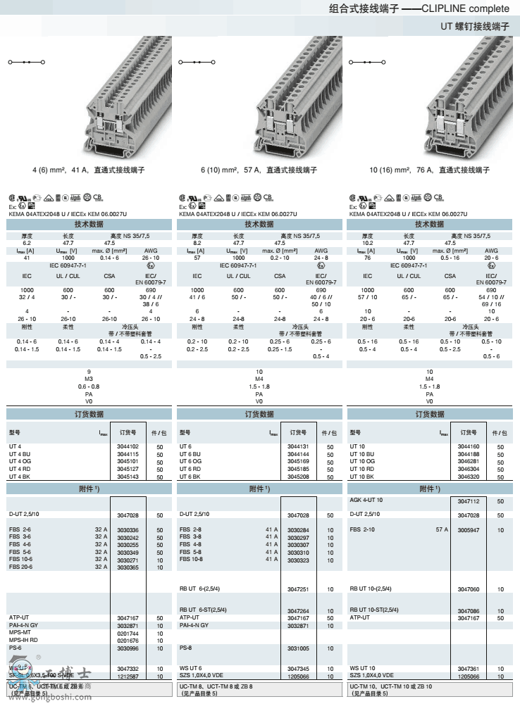 菲尼克斯phoenix螺釘接線UT 10 OG訂貨號3046281原裝現貨 可開增票