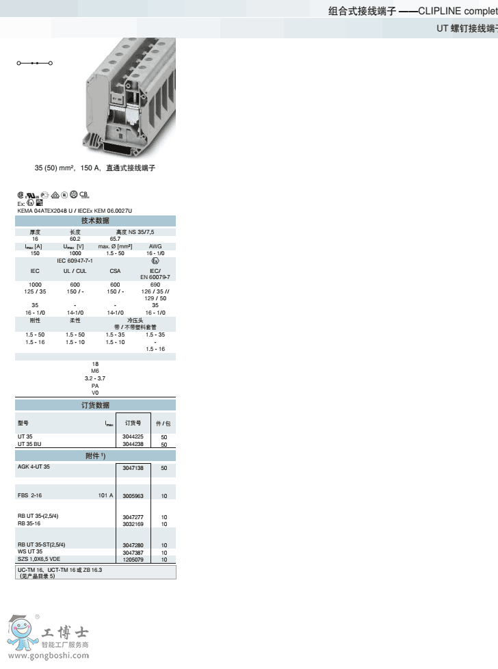 菲尼克斯phoenix螺釘接線UT 35 BU訂貨號(hào)3044238原裝現(xiàn)貨 可開(kāi)增票