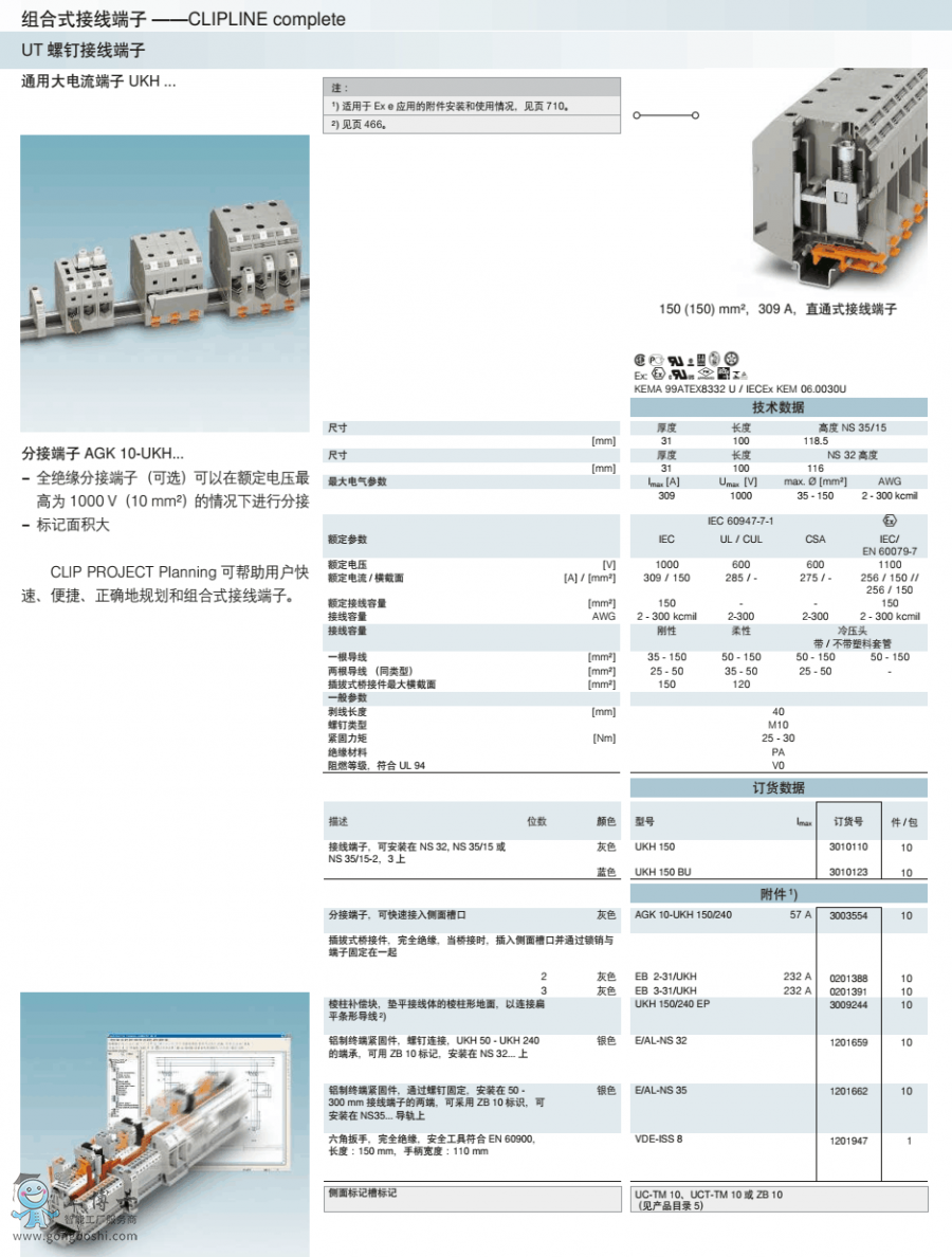 菲尼克斯phoenix螺釘接線UKH 150訂貨號3010110原裝現貨 可開增票