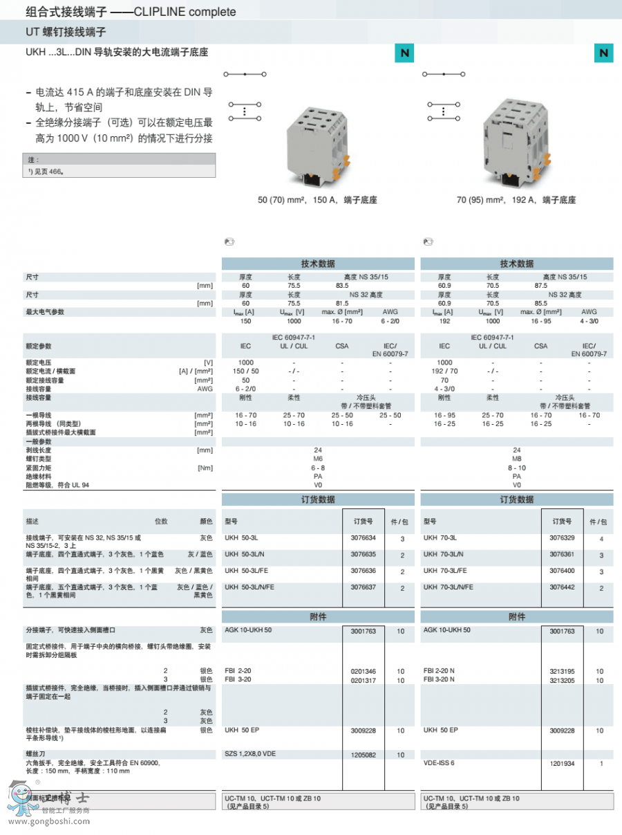 菲尼克斯phoenix螺釘接線UKH 70-3L/FE訂貨號3076400原裝現貨 可開增票