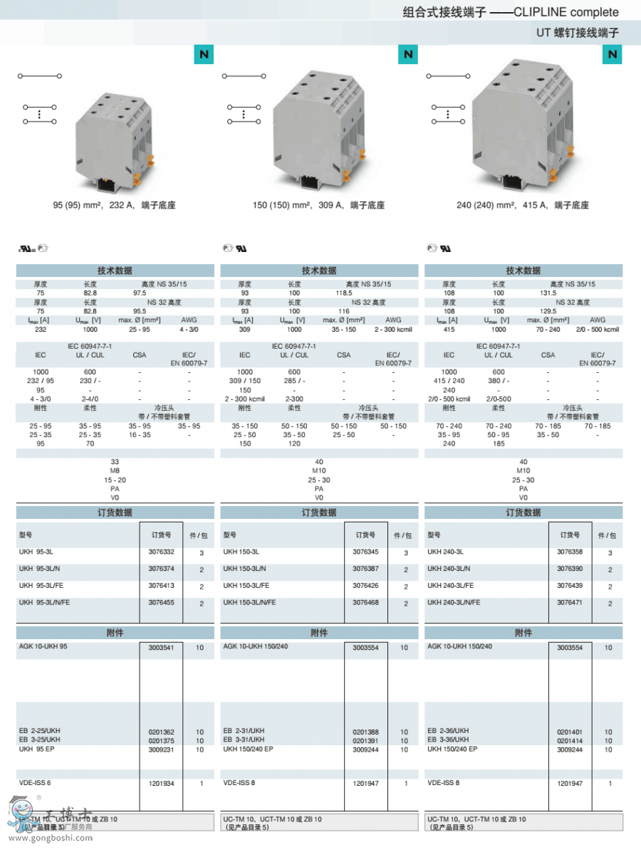 菲尼克斯phoenix螺釘接線UKH 150-3L訂貨號3076345原裝現貨 可開增票