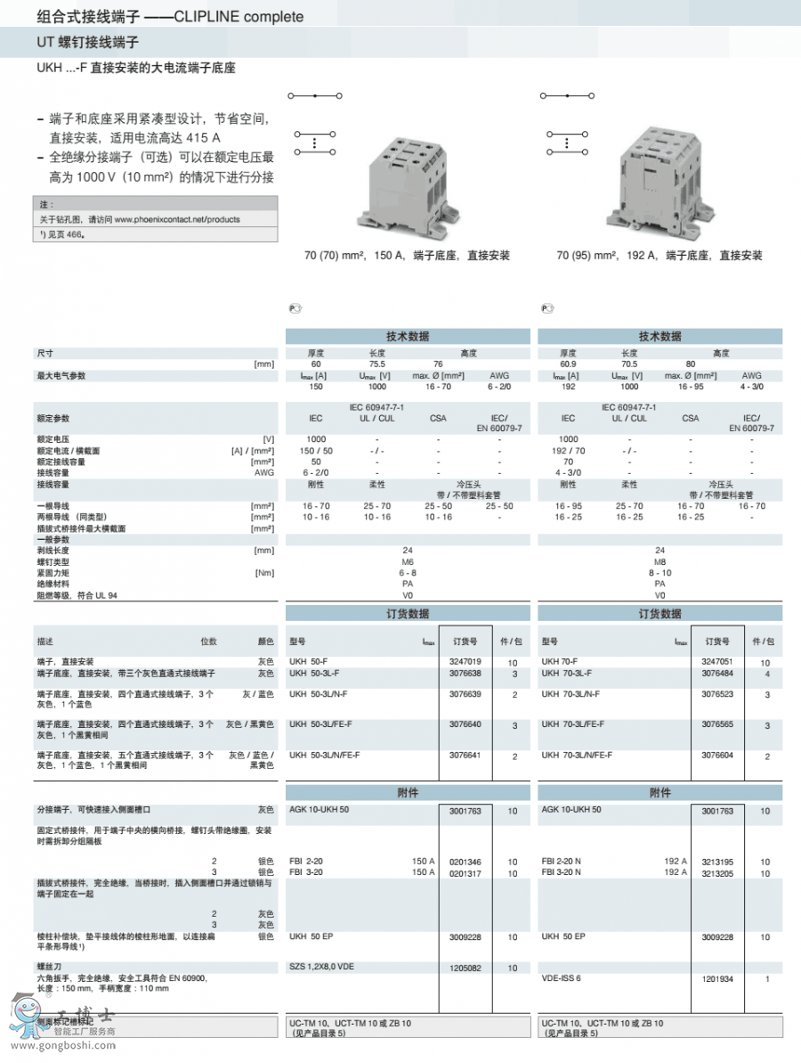 菲尼克斯phoenix螺釘接線UKH 70-3L/FE-F訂貨號3076565原裝現(xiàn)貨 可開增票