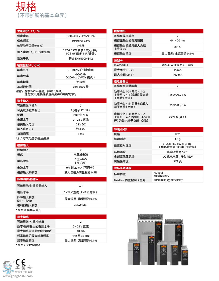 VLT® AutomationDrive 可在惡劣環境下穩定可靠運行。帶有涂層的 PCB 可防塵、防潮和防顆粒物,*高工作溫度為 55℃。PID 控制器、EMC 濾波器、直流電抗器和 22 kW 制動斬波器等內置功能部件可節省成本和安裝空間。IP 20 防護等級、可拆卸風扇、增強型數字顯示屏,可確?旖菰O置和簡化維護。