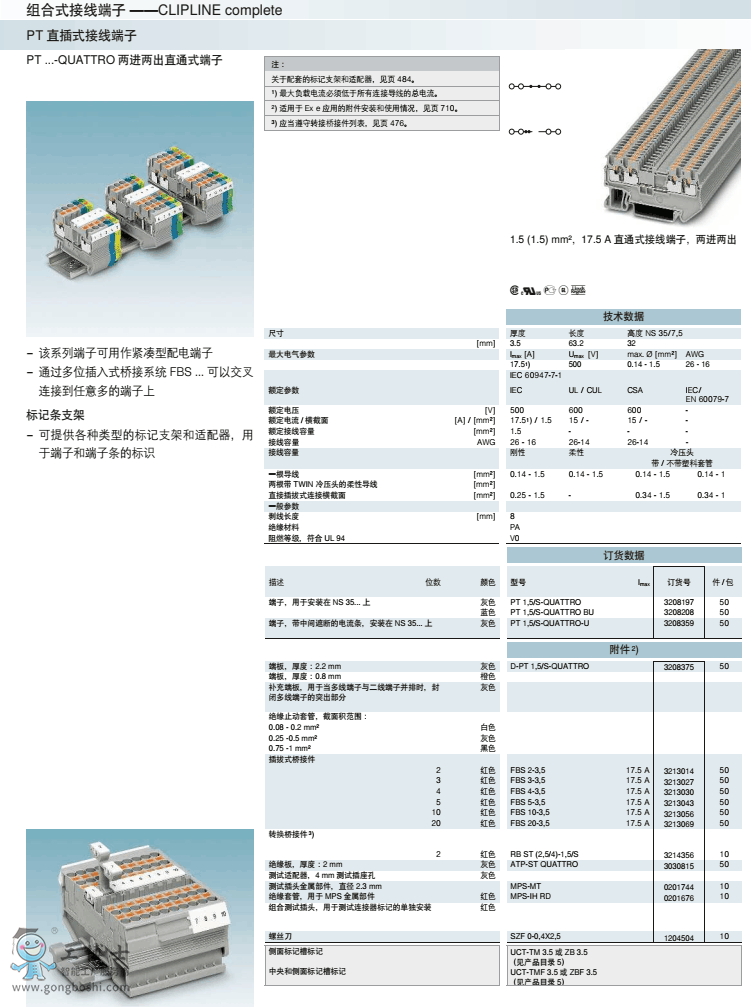 菲尼克斯phoenix直插式接線 PT 1,5/S-QUATTRO訂貨號3208197原裝現(xiàn)貨