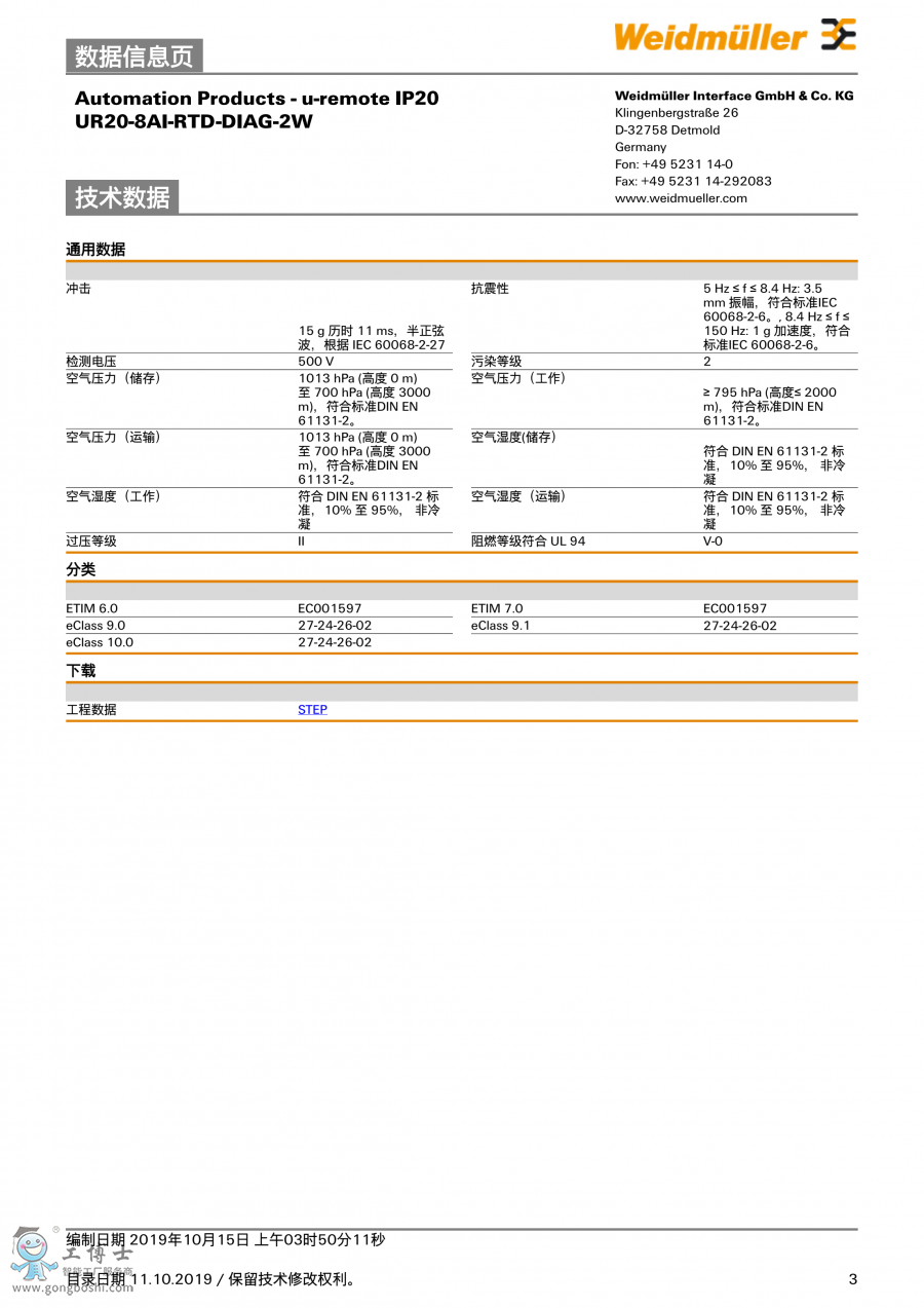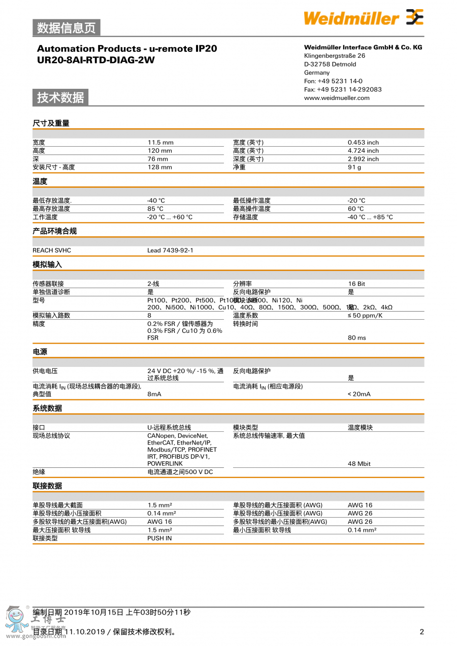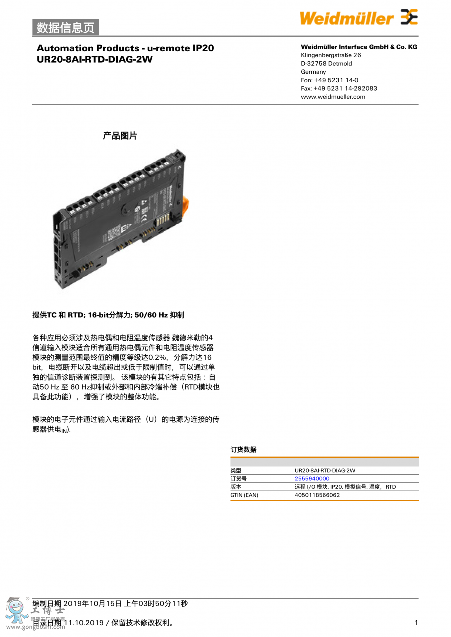UR20-8AI-RTD-DIAG魏德米勒weidmuller遠程I/O訂貨號2555940000 |