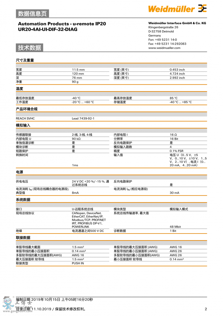 UR20-4AI-UI-DIF-32-DIAG 魏德米勒 遠(yuǎn)程I/O 訂貨號(hào)2544660000 |
