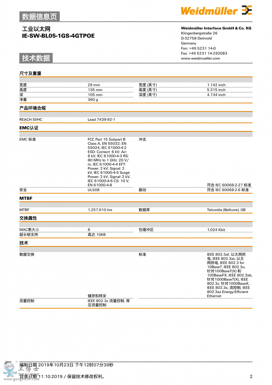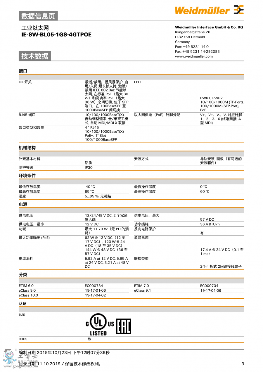 IE-SW-BL05-1GS-4GTPOE 魏德米勒 網絡交換機 訂貨號1504360000 |