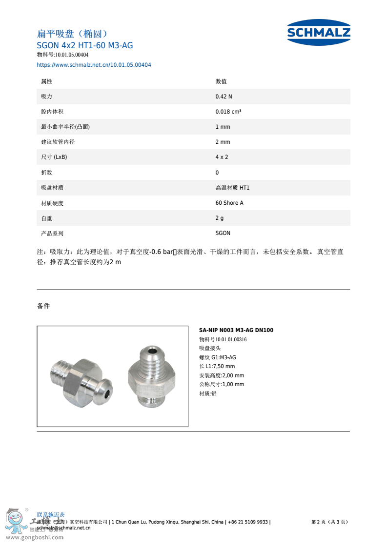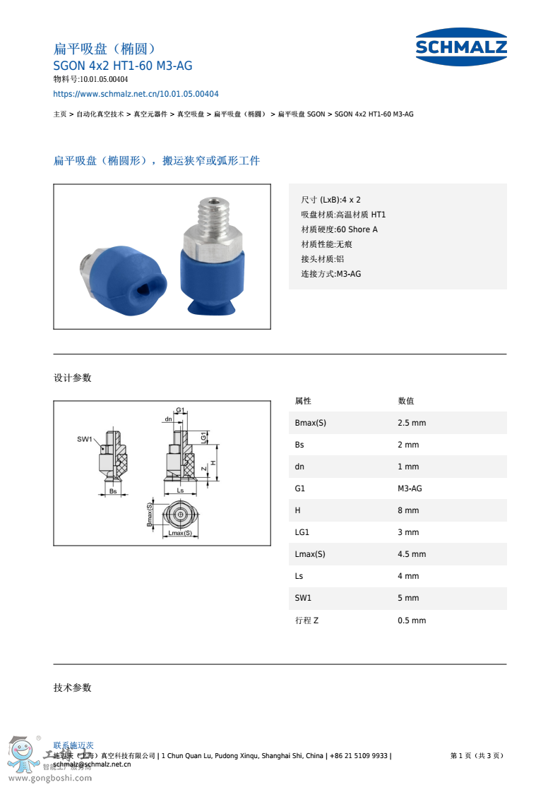 德國施邁茨扁平吸盤SGON 4x2 NBR-60 M3-AG產品|技術服務商 |