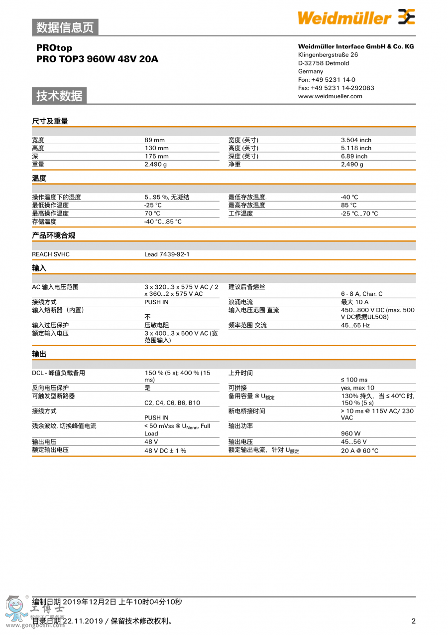 PRO TOP3 960W 48V 20A 魏德米勒 開關電源模塊 訂貨號2467170000 |
