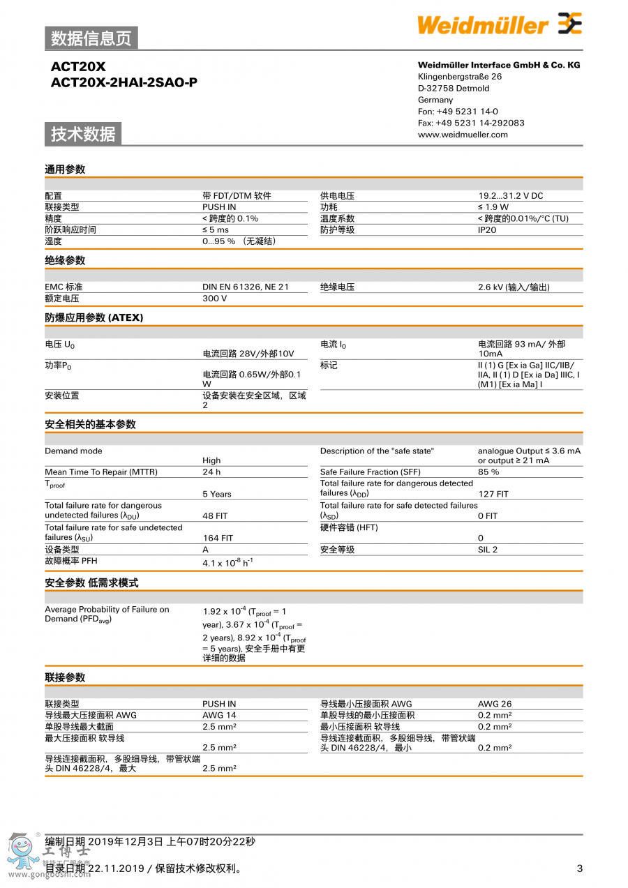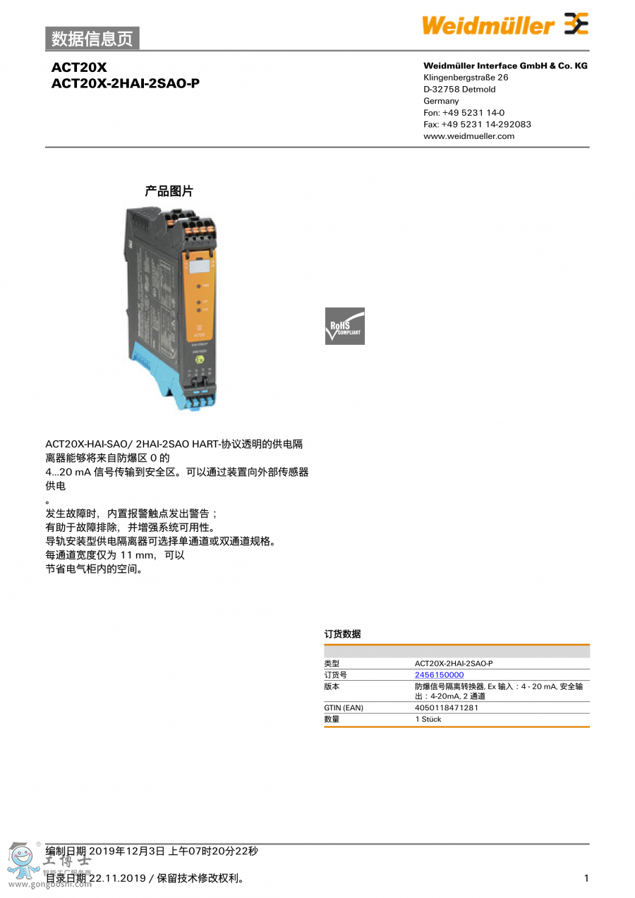 ACT20X-2HAI-2SAO-P 魏德米勒 防爆信號(hào)隔離轉(zhuǎn)換器 訂貨號(hào)2456150000 |