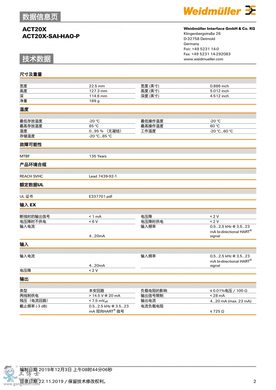 ACT20X-SAI-HAO-P 魏德米勒 防爆信號隔離轉換器 訂貨號2456160000 |