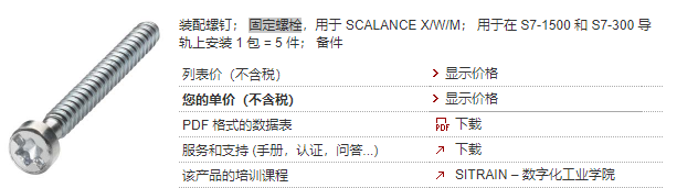 產品說明 裝配螺釘; 固定螺栓,用于 SCALANCE X/W/M; 用于在 S7-1500 和 S7-300 導軌上安裝 1 包 = 5 件; 備件