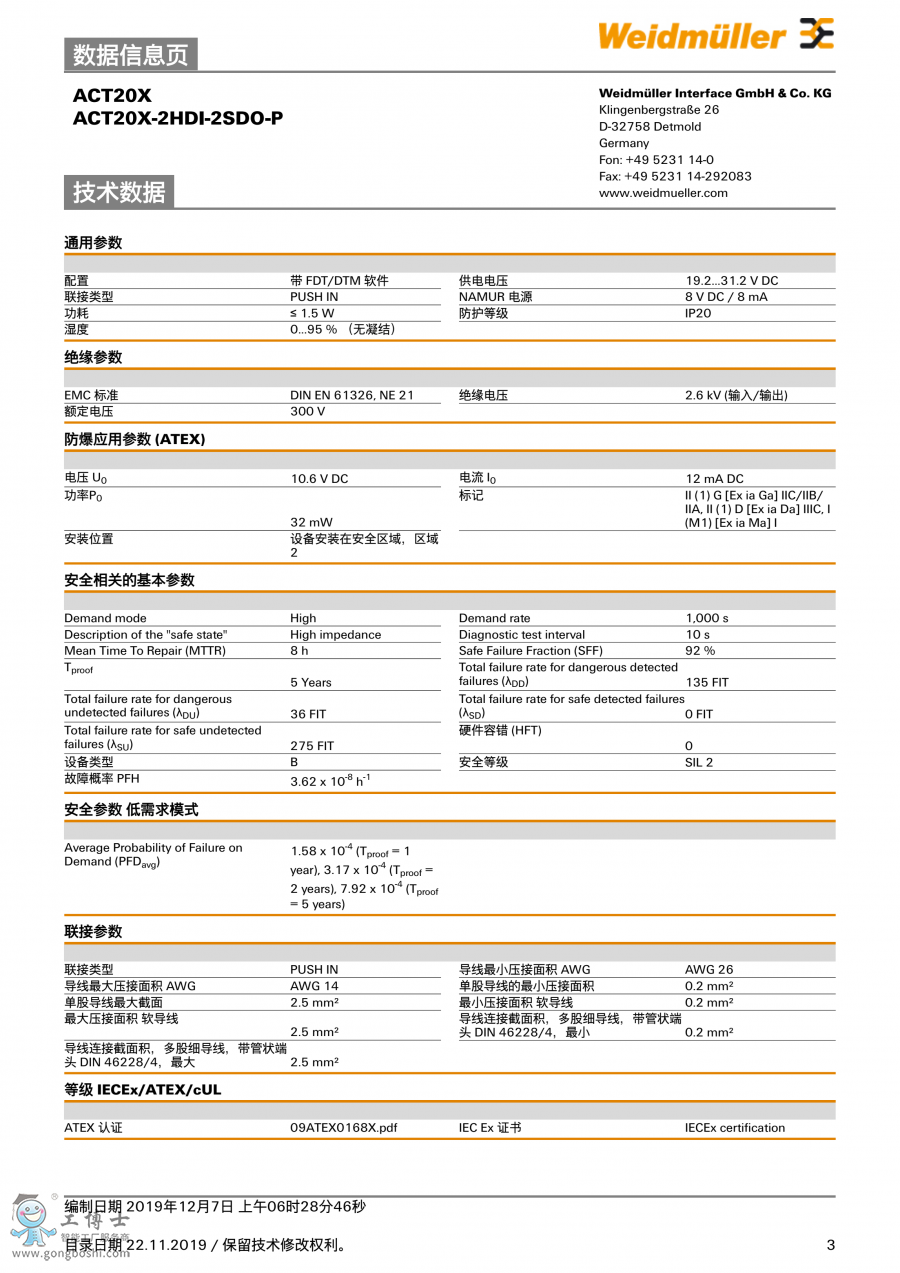 ACT20X-2HDI-2SDO-P 魏德米勒 防爆信號隔離轉換器 訂貨號2456100000 |