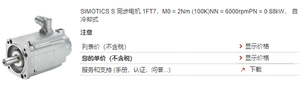 SIMOTICS S 同步電機 1FT7,M0 = 2Nm (100K)NN = 6000rpmPN = 0.88kW, 自冷卻式 |