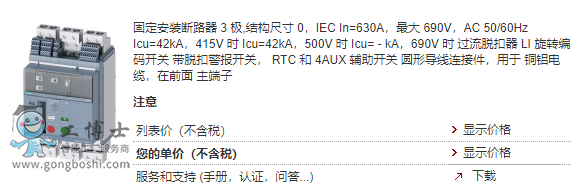 固定安裝斷路器 3 極,結(jié)構(gòu)尺寸 0,IEC In=630A,*大 690V,AC 50/60Hz Icu=42kA,415V 時 Icu=42kA,500V 時 Icu= - kA,690V 時 過流脫扣器 LI 旋轉(zhuǎn)編碼開關(guān) 帶脫扣警報開關(guān), RTC 和 4AUX 輔助開關(guān) 圓形導(dǎo)線連接件,用于 銅鋁電纜,在前面 主端子 |