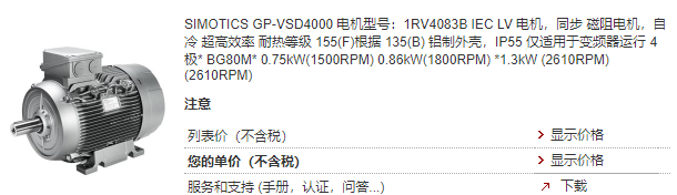 SIMOTICS GP-VSD4000 電機型號:1RV4083B IEC LV 電機,同步 磁阻電機,自冷 超高效率 耐熱等級 155(F)根據 135(B) 鋁制外殼,IP55 僅適用于變頻器運行 4 極* BG80M* 0.75kW(1500RPM) 0.86kW(1800RPM) *1.3kW (2610RPM) (2610RPM) |