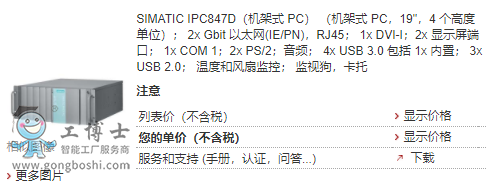 SIMATIC IPC847D(機架式 PC) (機架式 PC,19",4 個高度單位); 2x Gbit 以太網(IE/PN),RJ45; 1x DVI-I;2x 顯示屏端口; 1x COM 1;2x PS/2;音頻; 4x USB 3.0 包括 1x 內置; 3x USB 2.0; 溫度和風扇監控; 監視狗,卡托 |