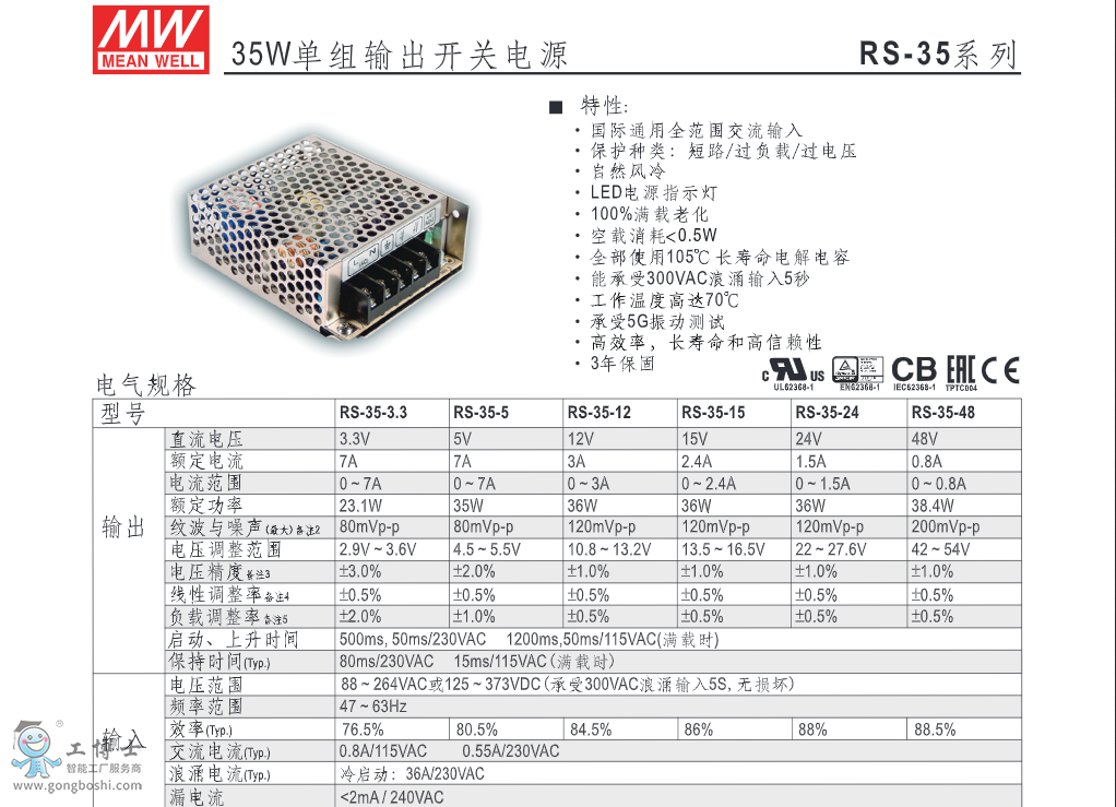 G3系列單組 RS-35 15W單組輸出開關電源