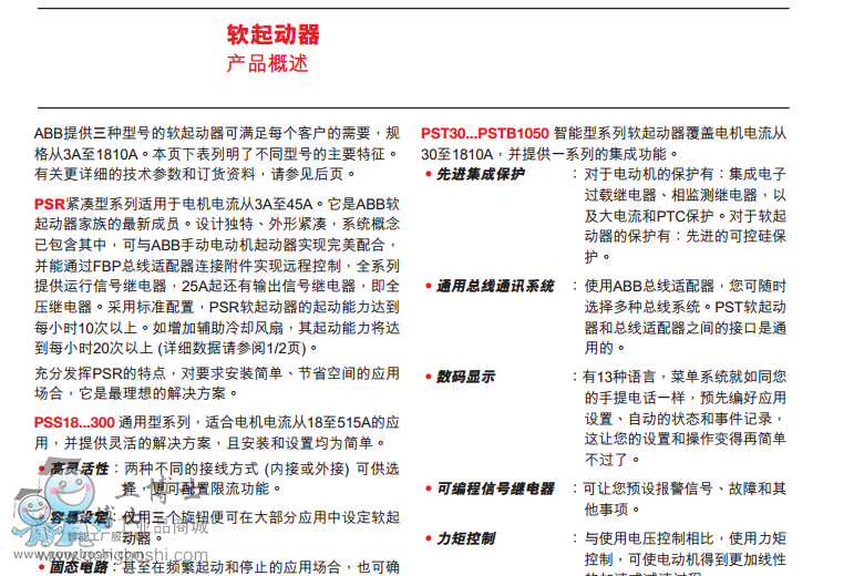 PSR - 緊湊型系列,覆蓋電動機電流范圍從3A至45A,是ABB軟起動器家族的*