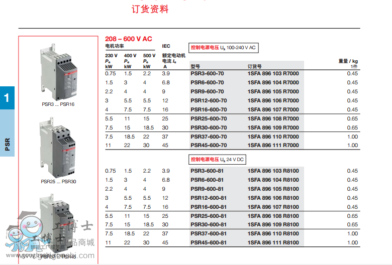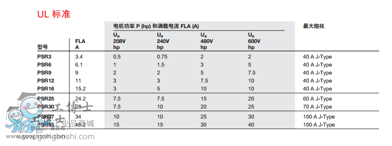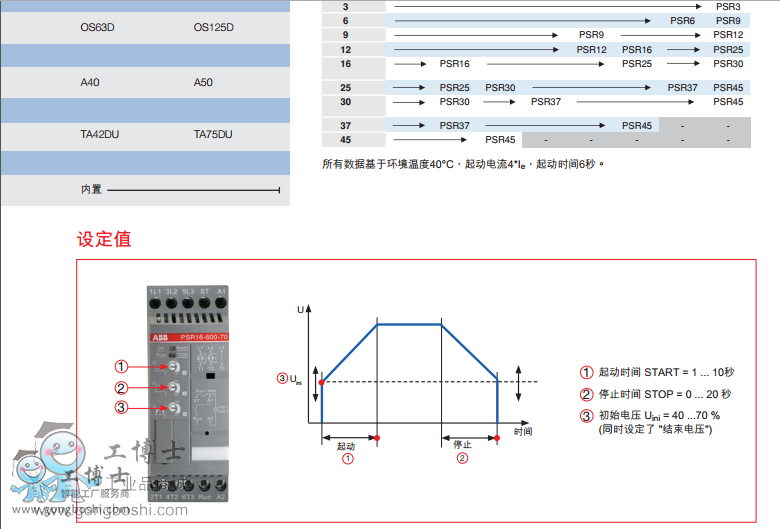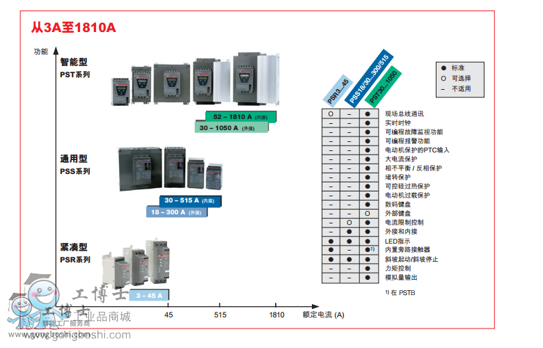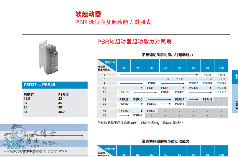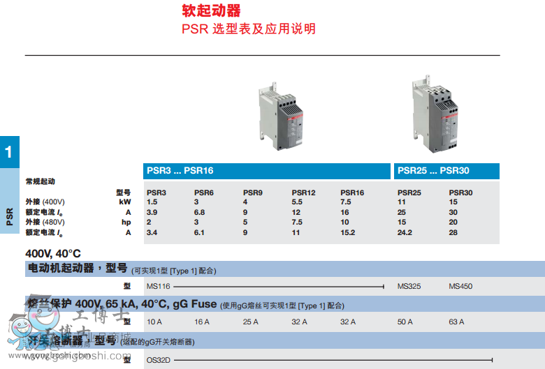 據可參閱下頁的PSR軟起動能力對照表)。