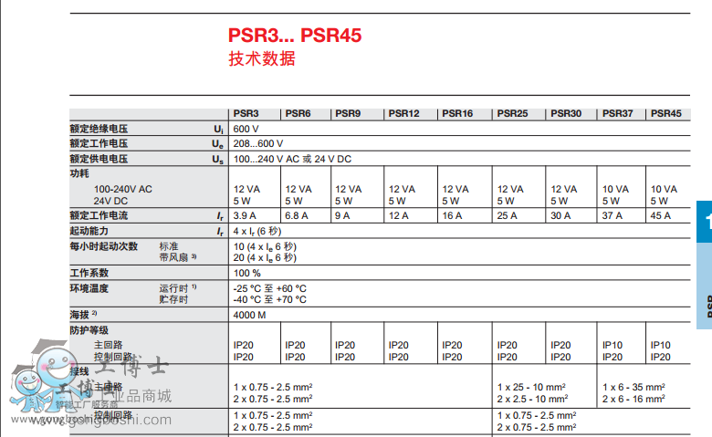 信號繼電器,25A及以上的PSR還帶有一個全壓信號繼電器。PSR軟起動器的起
