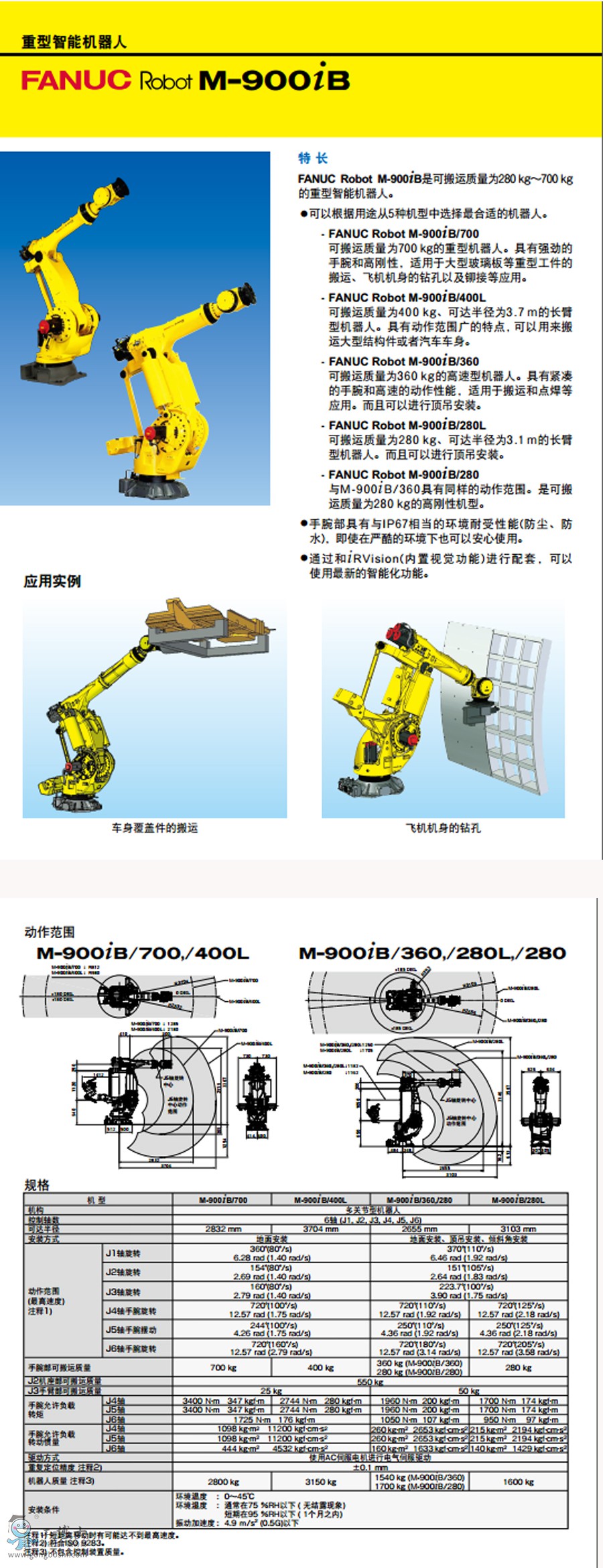 發(fā)那科/FANUC M-900iB/700 負(fù)載 700kg 工作區(qū)域 2832mm