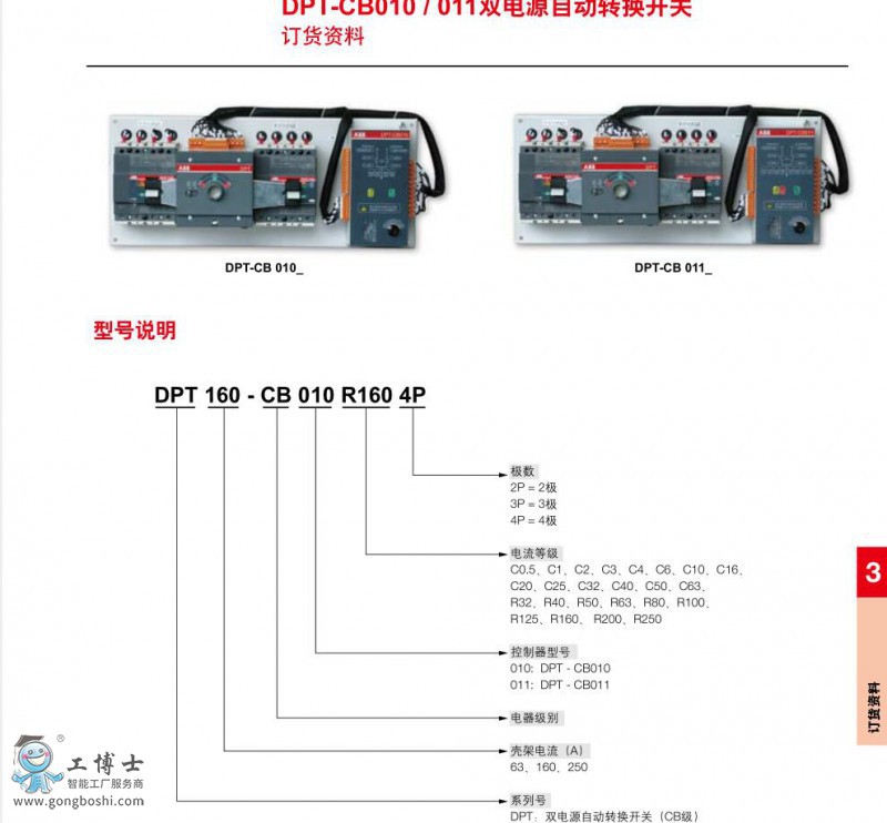 DPT160-CB010 R100 3P ABB雙電源自動轉換開關