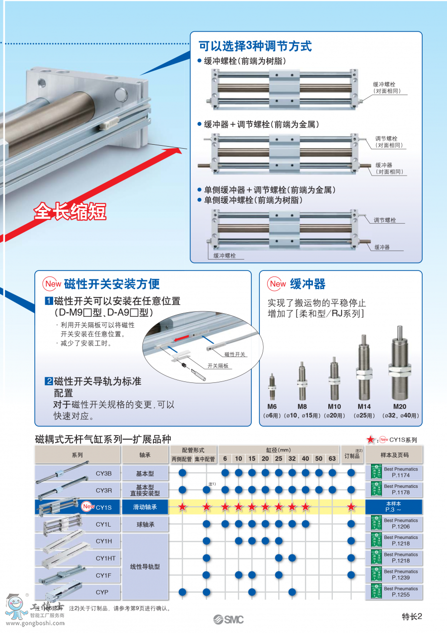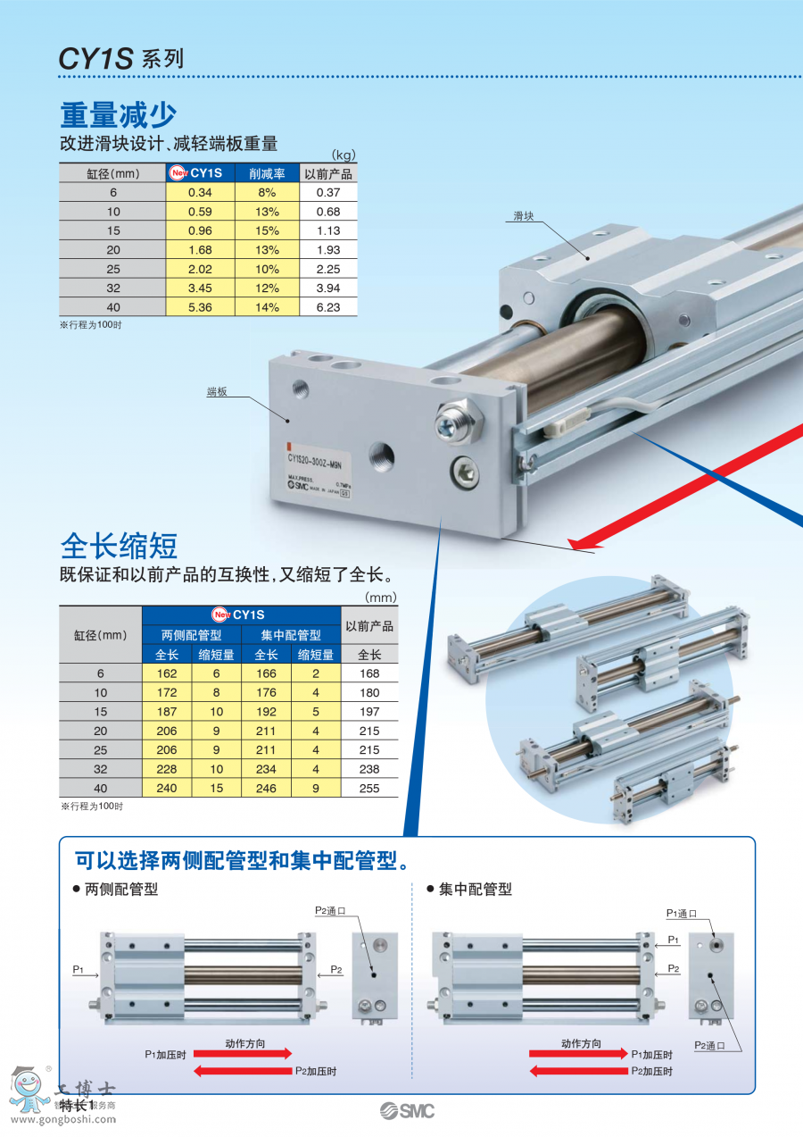 CY1S/CY1S-Z SMC 磁耦合式無桿缸