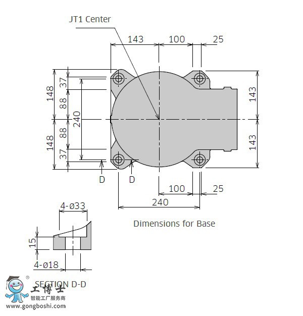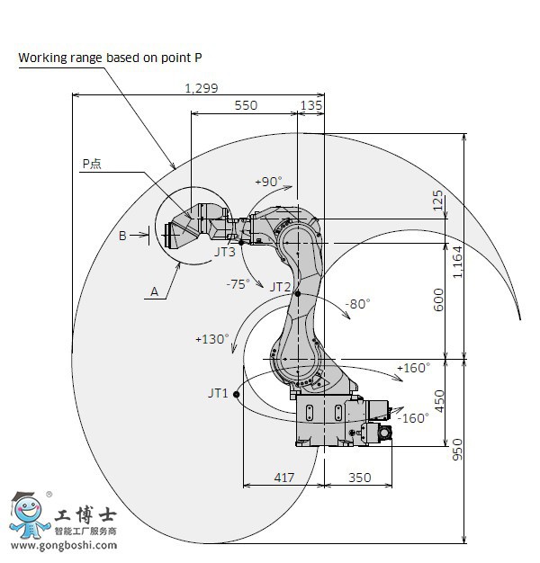 2: 6軸機(jī)器人的3R手腕構(gòu)造的時(shí)候,指的是JT1中心到JT4與JT5的回轉(zhuǎn)軸交點(diǎn)之間的距離。