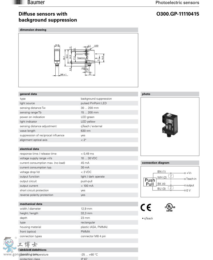 Baumer 堡盟 -O300.GP-GW1B.72N-漫反射式光電傳感器 電眼,光電開關 |