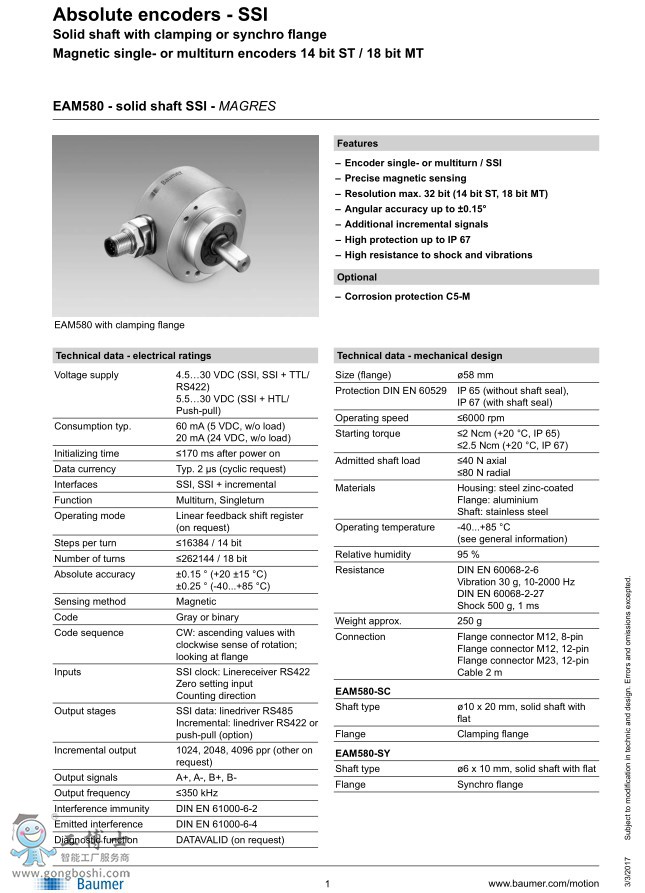 Baumer 堡盟 EAM580-SC0.7F4G.14160運動控制傳感器 |