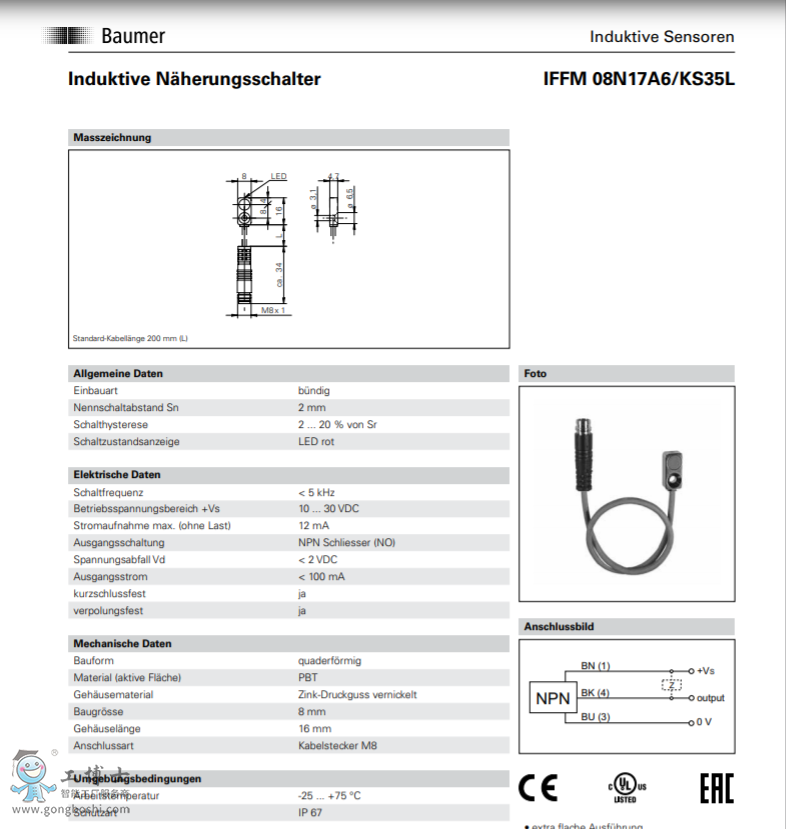 Baumer 堡盟IFFM 08N17A6/KS35L-電感式接近開關(guān)傳感器現(xiàn)貨增票 |