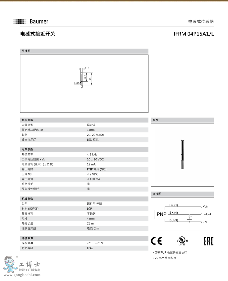 Baumer 堡盟 IIFRM 04P15/212816-電感式接近開關 |