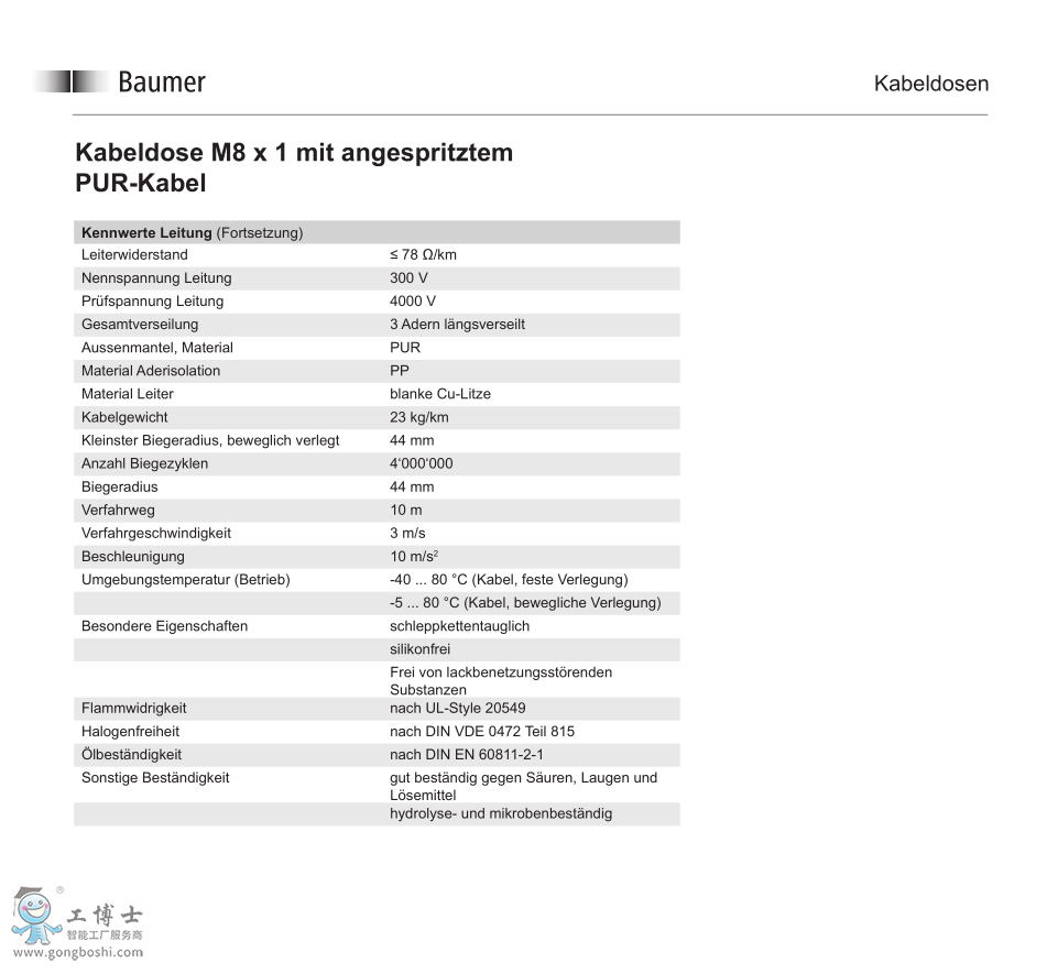 Baumer 堡盟 ESW 31SH0500 電纜及適配器 |