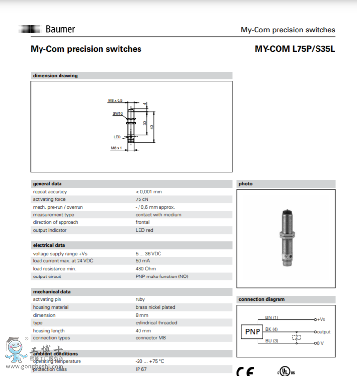 Baumer 堡盟 MY-COM L75P/S35L開關傳感器現貨可開增票 |