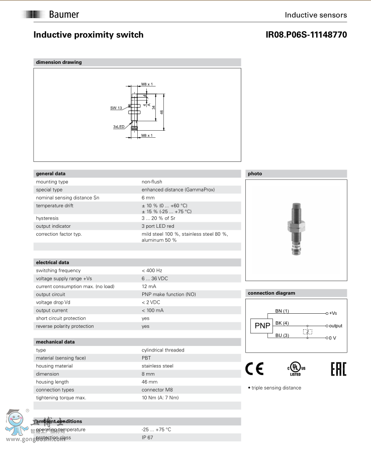 Baumer 堡盟IR08.P06S-11148770電感式接近開關傳感器 現貨 |