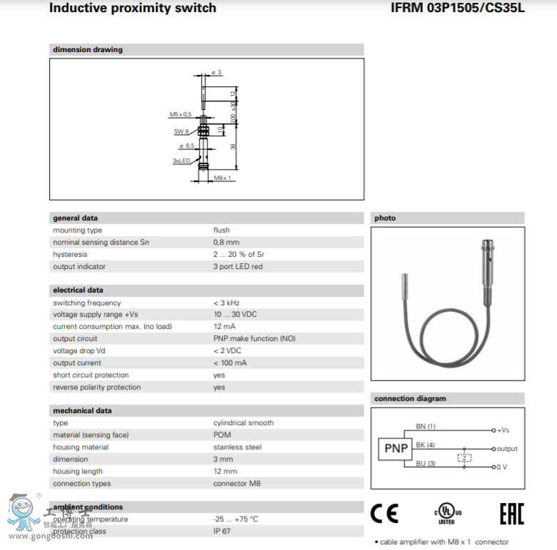 Baumer 堡盟 IFRM 03P1505/CS35L電感式接近開關可開增票現貨 |