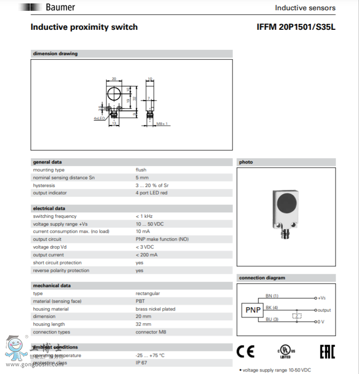 Baumer 堡盟 IFFM 20P1501/S35L-電感式接近開關 可開增票 |