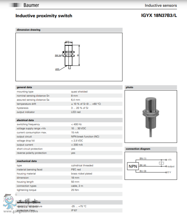 Baumer 堡盟 IGYX 18N37B3/L-電感式接近開關 可開增票 |